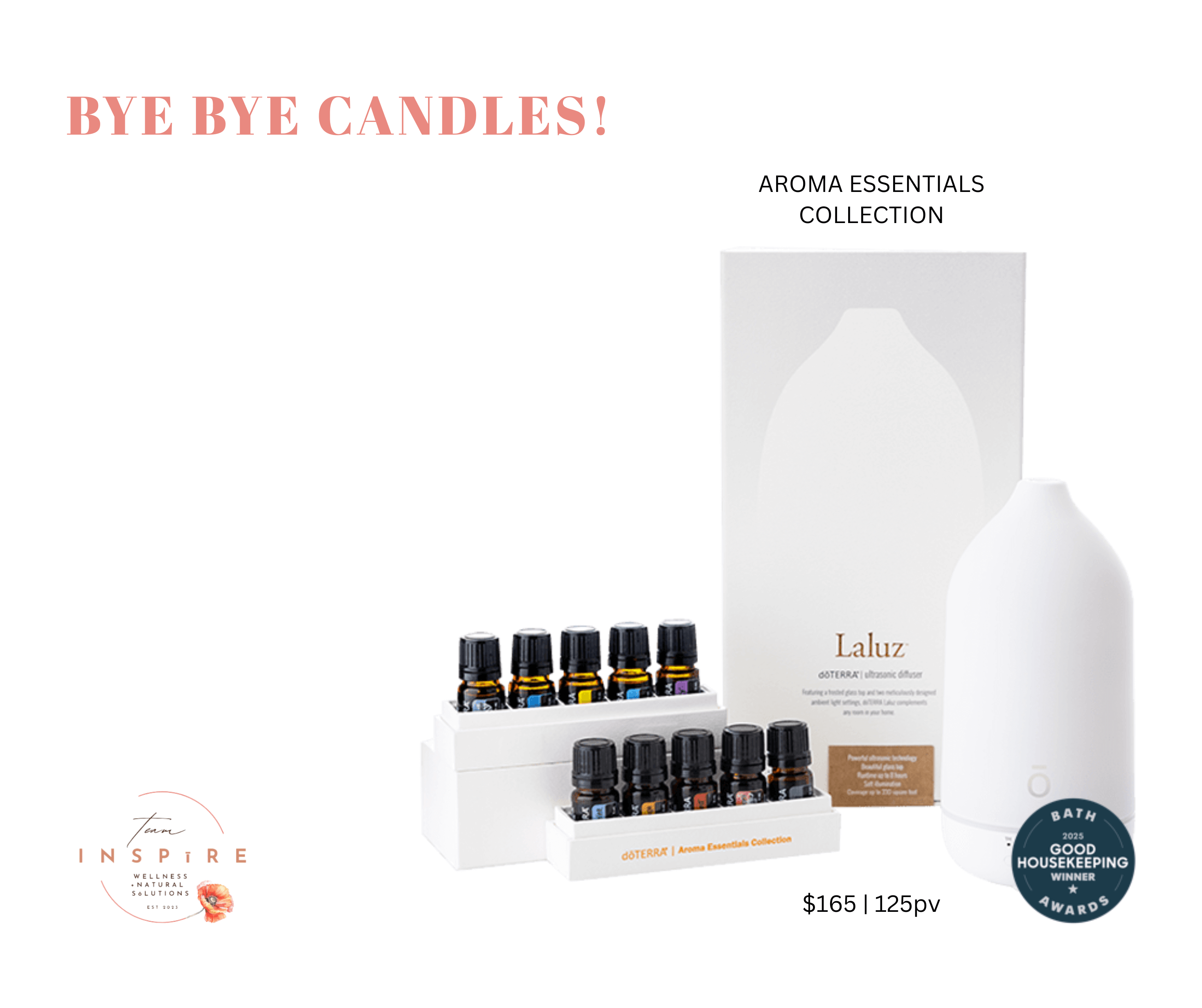 - Entry to Team INSPIRE's monthly giveaway in FB Group (double entries with any 125pv Rewards order)